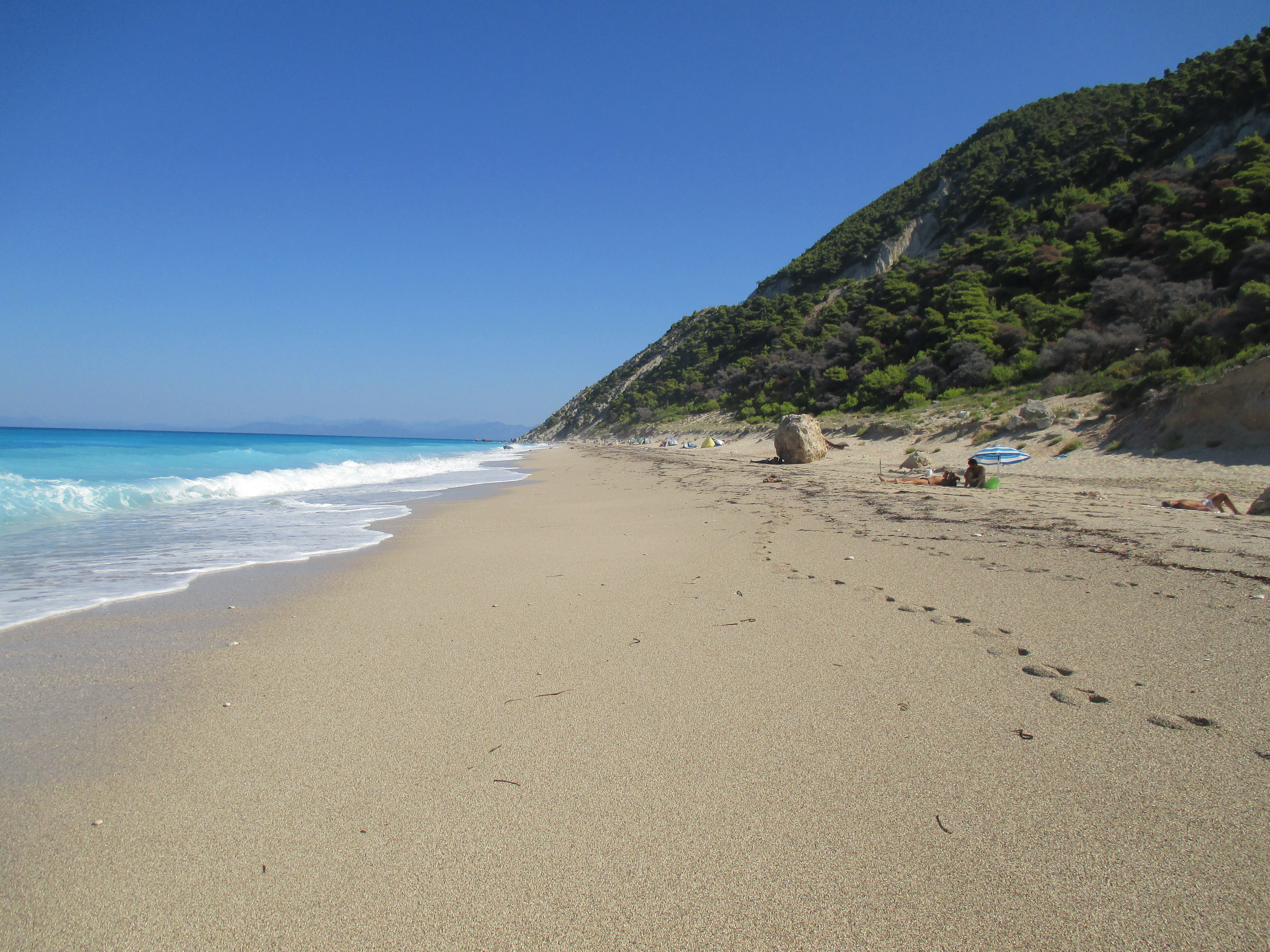 E, sad kada se kaže Lefkada, svima prvo padaju na pamet plaže Egremni i Porto Kaciki. Ove dve plaže su nekoliko puta bile opravdano uvrštene među najlepše u celoj Grčkoj i Mediteranu. Meni lično su najlepše Porto Kaciki i plaža Milos do koje se stiže ili nepreglednom kozijom stazom za avanturiste ili laganom desetominutnom vožnjom malim čamcem koji hvatate iz mesta Agios Nikitas, po ceni od 5 eura za povratnu kartu.Ovaj čamac logično ne saobraća ukoliko su tog dana veliki talasi na zapadnoj strani.