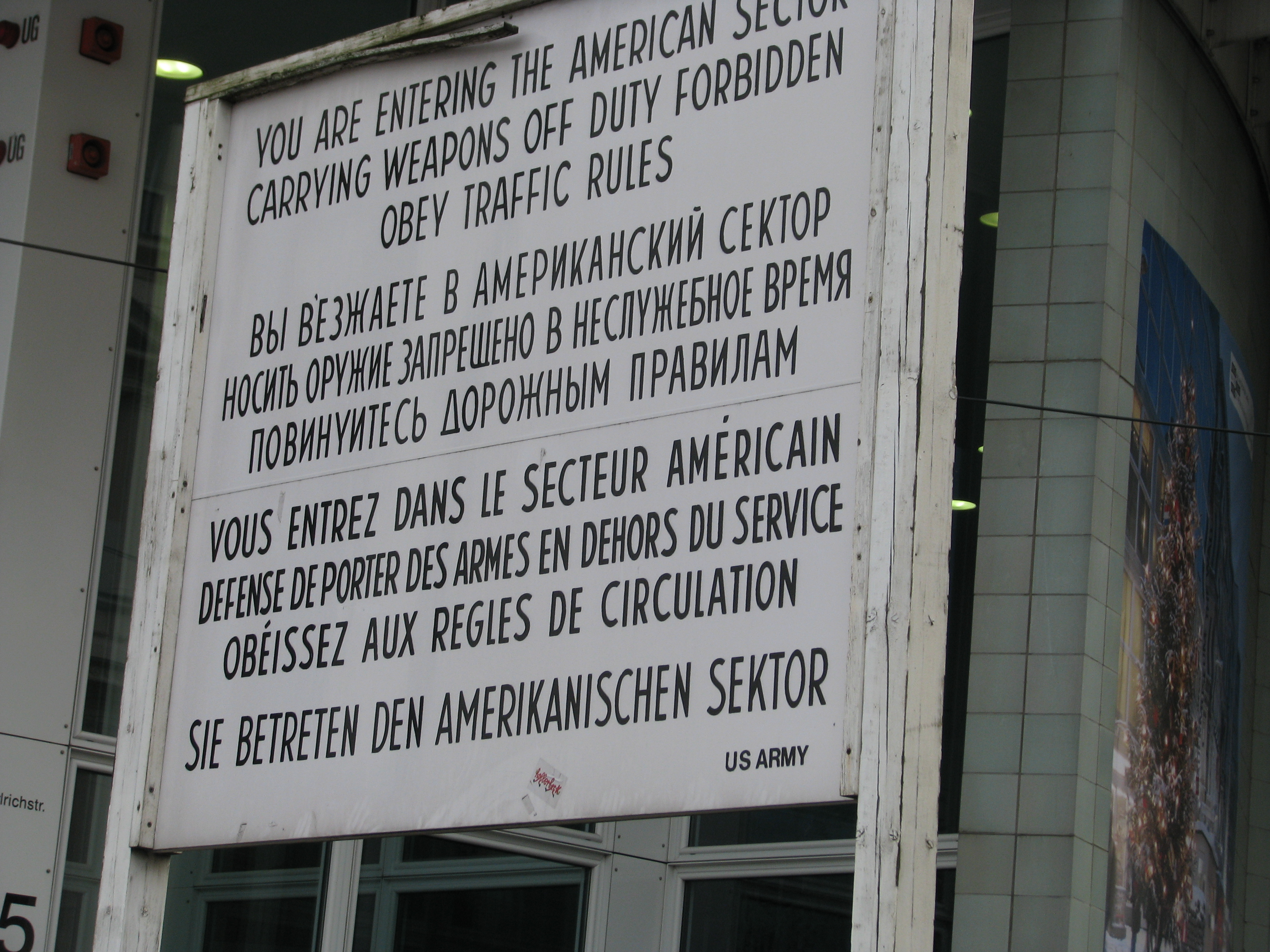 Treći korak i eto nas kod Checkpoint Charlie atrakcije. Ovo je bio najpoznatiji granični prelaz između Istočne i Zapadne Nemačke. Od 22. Septembra 1961.godine su baš na ovom mestu vojnici Alijanse mobilisali članove američkih, britanskih i francuskih oružanih snaga pre njihovog odlaska u istočni Berlin.Inače, slovo C je preuzeto iz NATO fonetske abecede koja se internacionalno koristi u radio saobraćaju. Instalacija umetnika Franka Tiela koja se danas tu nalazi i napravljena je po uzoru na nekadašnji prelaz, smeštena je u ulicu Friedrichstrasse. Još jedan dokaz o jezivim vremenima koje Berlin ne zaboravlja. Vredi videti.