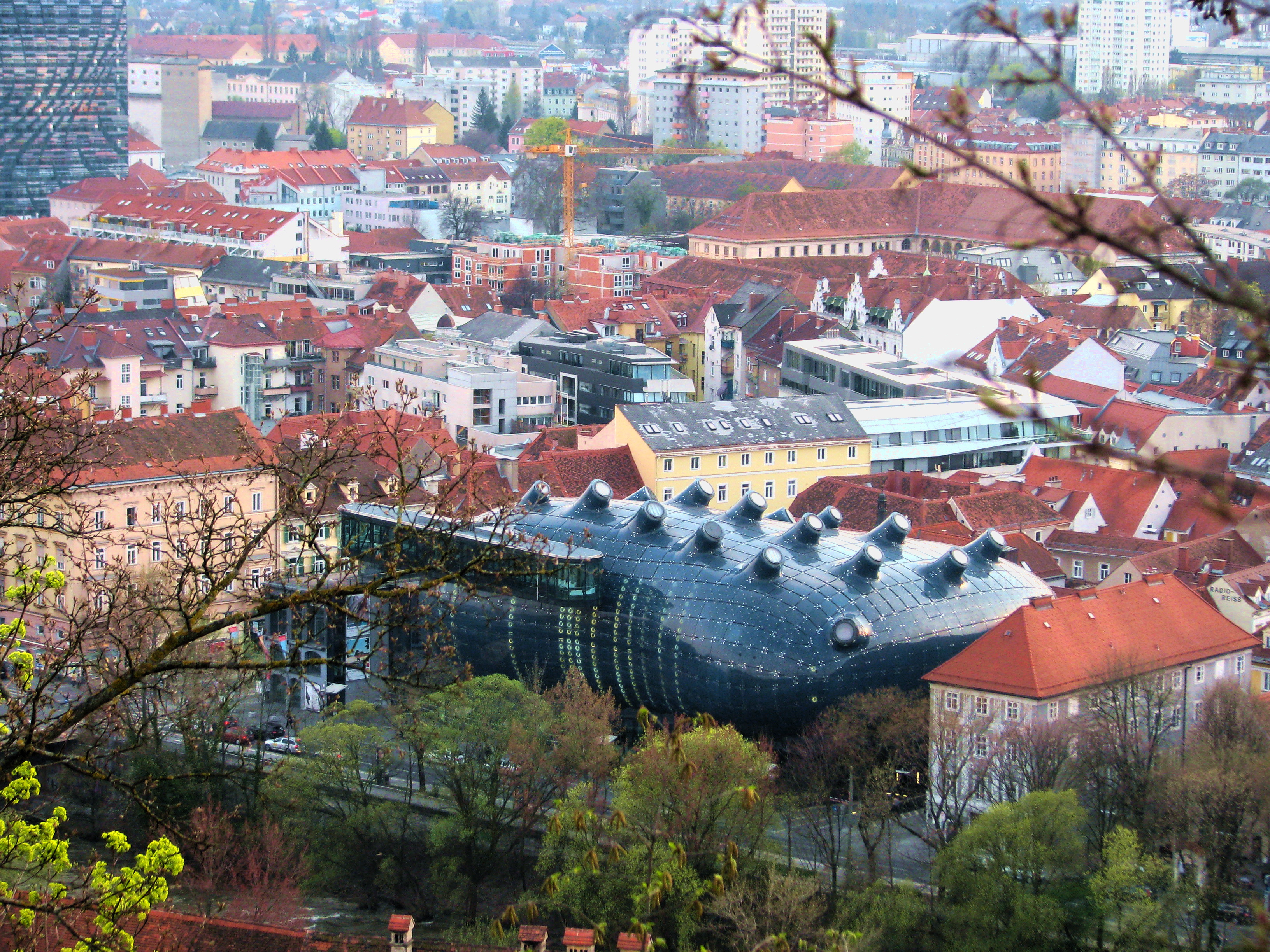 Kunsthaus (Kuća umetnosti) u Gracu, je posle Dalijevog, drugi najneobičniji muzej koji sam ikad posetila. Grac je gradić kojim dominiraju zgrade i crkve tradicionalnog stila a ovaj muzej doslovno izgleda kao neko vanzemaljsko biće, koje se nastanilo u samom centru Graca. Ovaj multifunkcionalni prostor je pogodan za izložbe, prezentacije, poslovne događaje i ima restoran na vrhu, sa nestvarnim pogledom. Kunsthaus je delo dvojice britanskih arhitekti a lokalci su ga zbog spoljašnjeg izgleda prozvali ”prijateljski vanzemaljac”. Ja nisam neki ljubitelj moderne umetnosti, tako da mi se unutrašnjost i nije nešto dopala jer je zamišljena kao velika crna kutija sa trikovima za posetioce. Ko voli, neka izvoli. Vredi slikati spolja, u svakom slučaju !