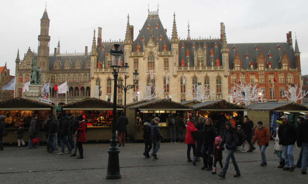 Kada ste već na Grote marktu iliti glavnom trgu, prošetajte se i slikajte sve te stare građevine,veselih boja i zanimljivih oblika. Trgovi uglavnom imaju po jednog konja, a ovde se na centralnom mestu nalaze dve velike statue posvećene dvojici (Pieter de Coninck and Jan Breidel), koji su uspešno predvodili flamansku vojsku tokom francuske okupacije 1302. godine kada su svi francuski vojnici izginuli. U staro vreme se ovde naravno nalazila tržnica, a i danas, u vreme praznika, mnoštvo novogodišnjih brvnara vam nudi kuvano vino, kobasice, burgere i još mnogo toga. Pošto je Briž dosta skup gradić, fast food je za turiste najpogodnija opcija.