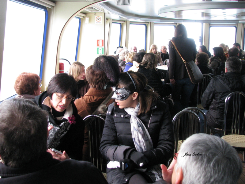 Bili smo smešteni u letovalistu Lido di Jesolo preko puta Venecije.Brodom smo ujutro posle osrednjeg doručka u zakazano vreme (to je agencija organizovala -15 EUR za povratnu kartu) polazili iz luke Punto Sabbioni za Veneciju.Pošto hiljade turista hrli u doba karnevala za Veneciju, nije bilo dovoljno mesta za parkiranje na redovnom parkingu, već je odredjena velikaaa livada kao improvizovani parking za buseve, dok su dva policajca zavodila red. Svuda gužva, gužva, gužva, ali za divno čudo to uopšte ne smeta, sem kada je u pitanju ono mesto gde car ide sam.Joj, kad se setim da smo u dolasku, negde posle Trsta, stali kod Auto grilla da obavimo „neke poslove”, a ono red sve do parkinga…trebalo je sigurno čekati jedno sat dva vremena da bi se došlo do WC-a.