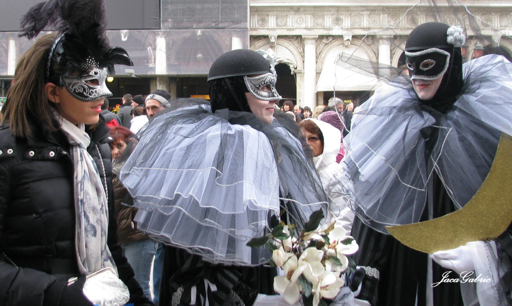 Allora, karneval u Veneciji je stvarno nešto jedinstveno i posebno i razlikuje se od svih drugih karnevala na svetu.Ovo je nešto za dušu i oči, za uživanje, da se nahrane sva čula. Galerija raskošnih kostima svih boja i istorijskih maski, gde se eksponati kreću svuda oko vas, tu pod vedrim nebom.Dostojanstveni pokreti, sklad boja, držanje, šuštanje svile (10-15 metara kvalitetnog materijala treba za samo jedan kostim). Bez mnogo buke i galame, ali opet svečano, veselo i nesvakidašnje. Ovde nema počasnih tribina, posebih galerija za odabrane, već se sve dešava na ulici, dostupno svima.Ulicama i trgovima šetaju maskirani ljudi, sami originali od glave do pete, udešeni do najsitnih detalja– opkoljeni fotografima, amaterskim i onim profesionalnim. Praznik za oči ! Fešta za sve, mlade i stare, bogate i siromašne.