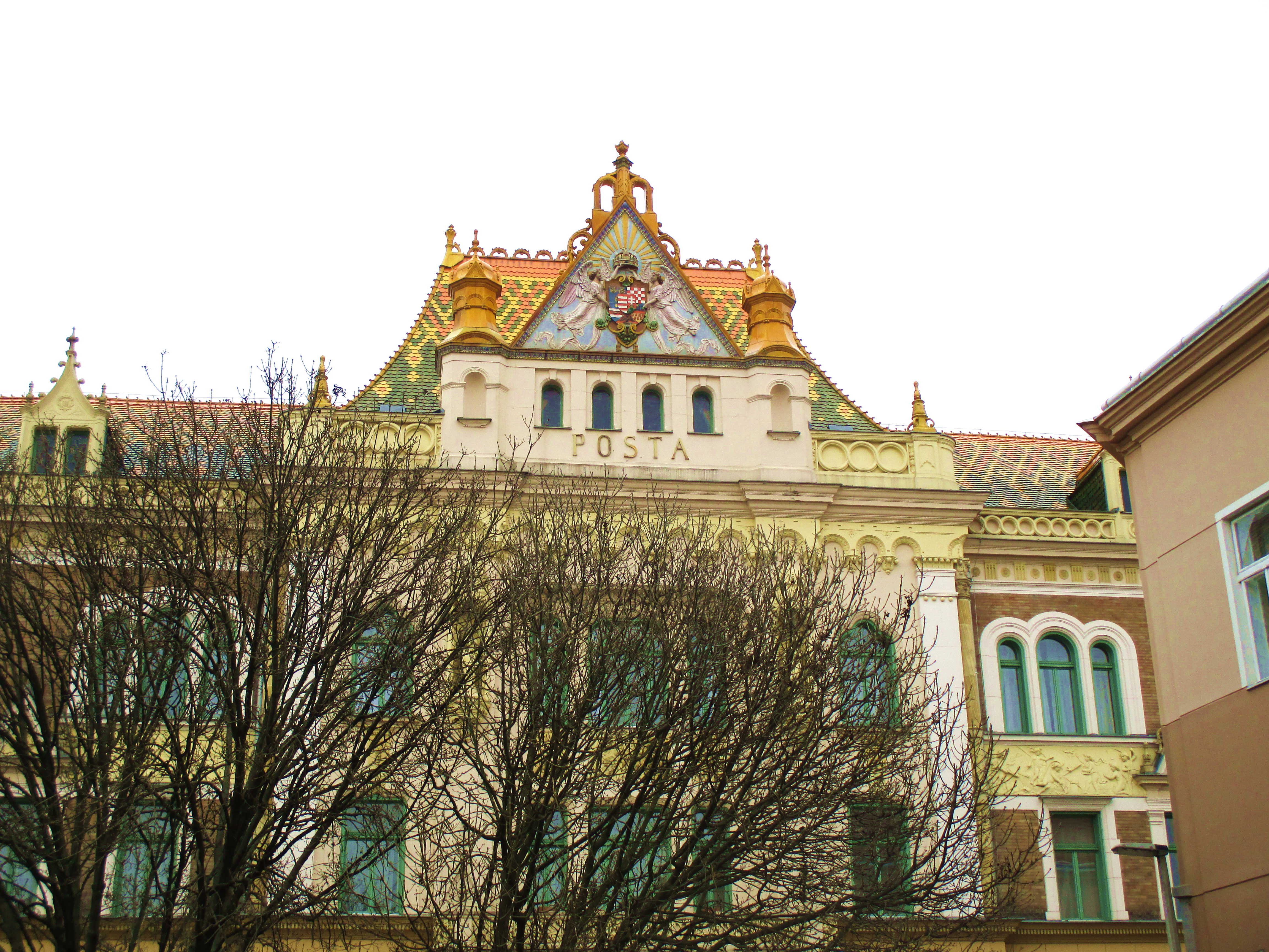 Zgrada pošte je jedna od lepših zgrada u Pečuju, sa govornicama nalik onim londonskim, pa je zgodno za slikanje. Inače, Pečuj obiluje lepim, umetničkim fasadama a upravo ova zgrada važi za jedno od najlepših i najvažnijih zdanja u Pečuju. Pečuj je grad na drugom mestu koji je otvorio telefonsku centralu 1885.godine. Bratislava je na prvom mestu.