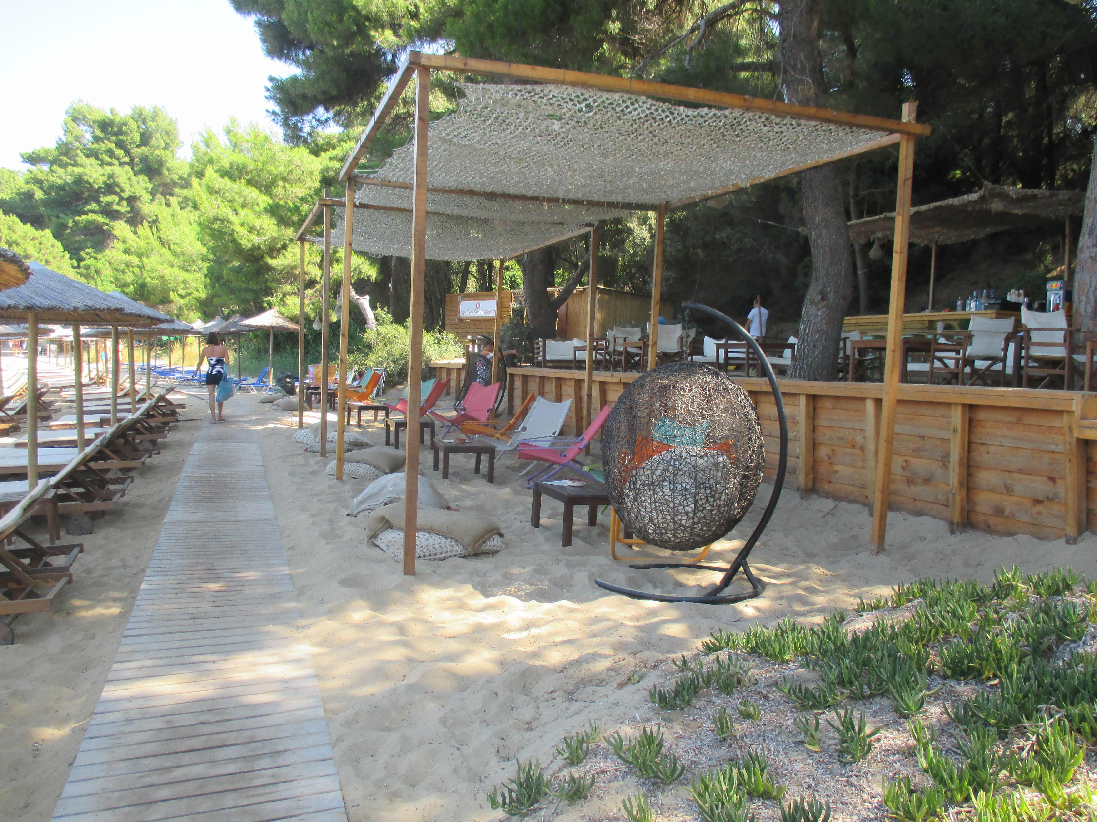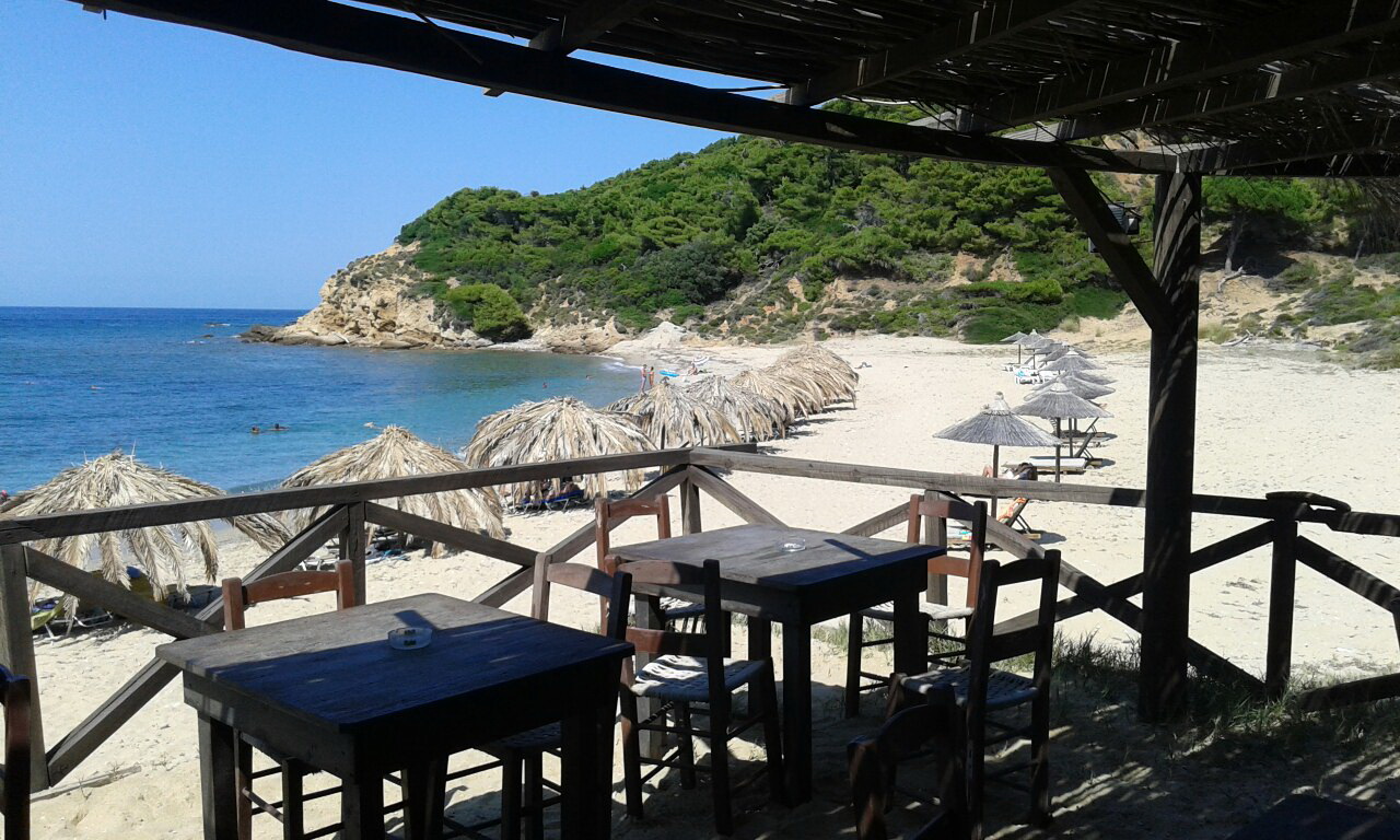Na plaži postoji i neka taverna u pesku ,ali nju ne preporučujem zato što ni hrana nije nešto, a osoblje je prilično namrgođeno i neprofesionalno. Kada vidite punačkog, tromog gazdu Grka, bude vam jasno zašto mu je osoblje takvo.