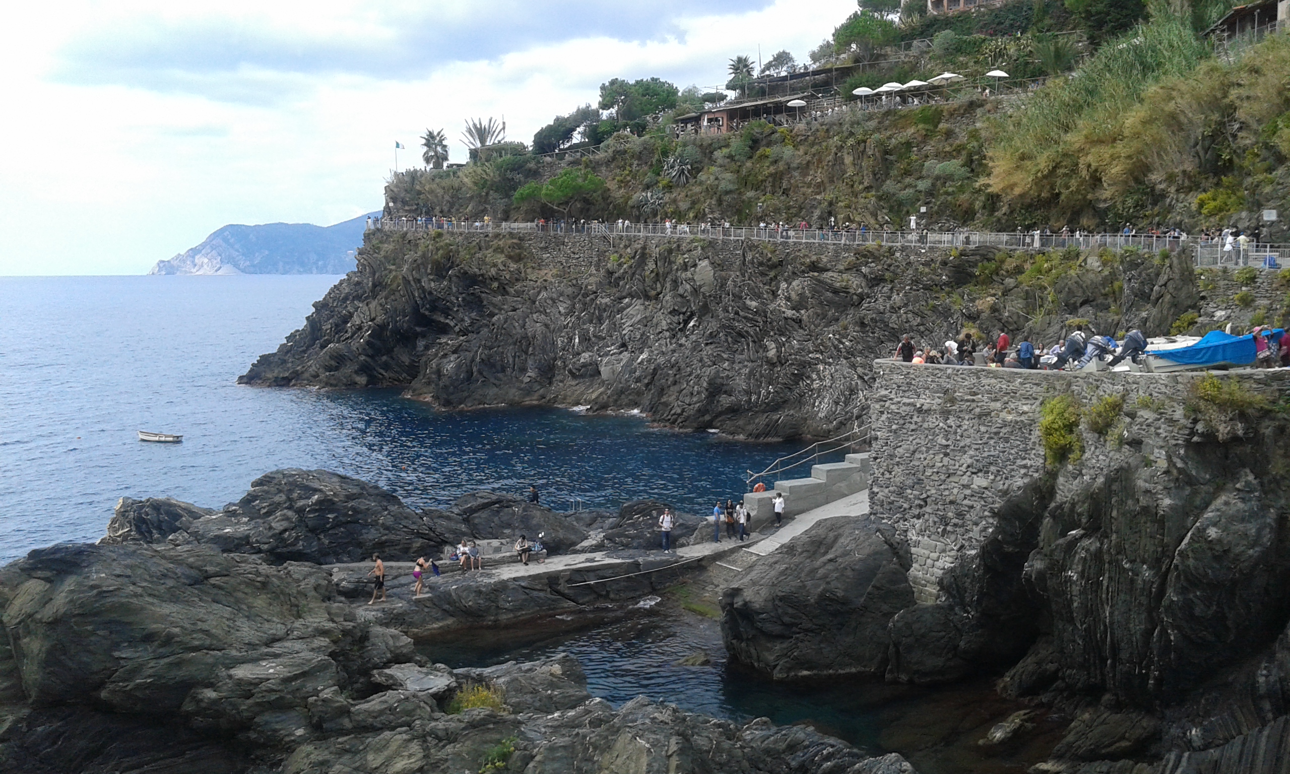 Što se Corniglie tiče, ona malo odstupa po građi od ostalih sela, jer do prelepog pogleda vode 382 stepenika ili neki lokalni bus. Imajući u vidu da mi se nije toliko pentralo, a da sam i vremenski bila prilično ograničena i ne baš sigurna koliko često taj bus saobraća, moja saputnica i ja smo rešile da to selo preskočimo i umesto toga rešile da uživamo u ručku sa pogledom na more, u Manaroli. Slike sa Google-a uglavnom jesu slikane u Manaroli iz nekih posebnih uglova ili sa mora ili zahvaljujući Vii del’ Amore, koja je ovom prilikom bila zatvorena, osim nekih 200 metara.