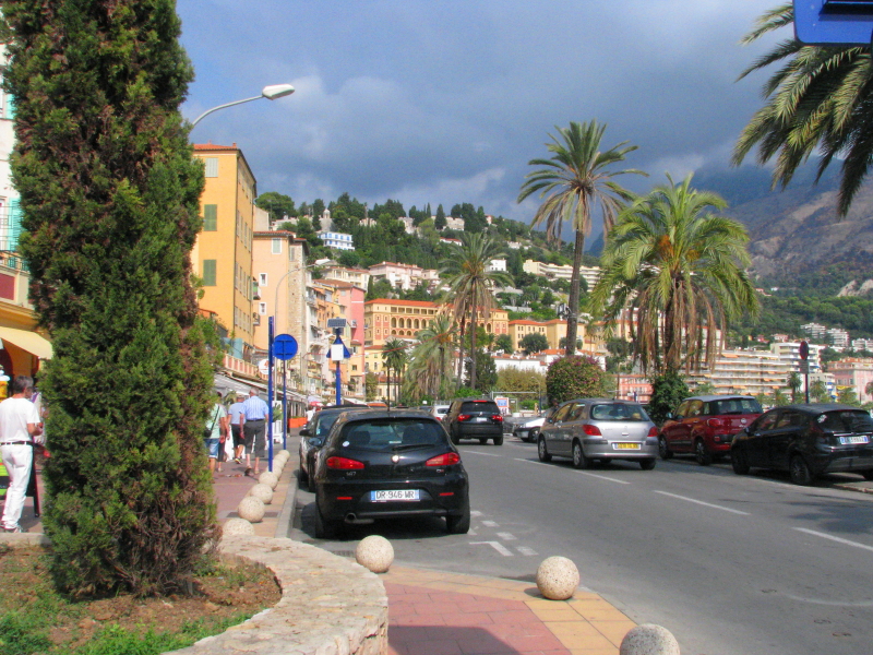 Grad krase pastelne boje kao simbol italijanskog uticaja i ponovo uske ulice. Danas je Menton mondensko letovalište, a zbog pogodne klime su se ovde nekada lečili vojnici. Postojala su lečilišta protiv tuberkuloze, a naš vojvoda Putnik je ovde preminuo, tokom lečenja. Ovde zaista sve tegobe prestaju, a nije luda engleska i ruska aristokratija što je ovde nekada provodila zime, od decembra do marta, a ne leta. Zimi se temperatura ne spusti ispod 10 stepeni što je opet odlika pogodnih klimatskih uslova i geografskog položaja kog karakterišu brda koja ga ušuškavaju, pa je on najtopliji grad na Azurnoj obali.
