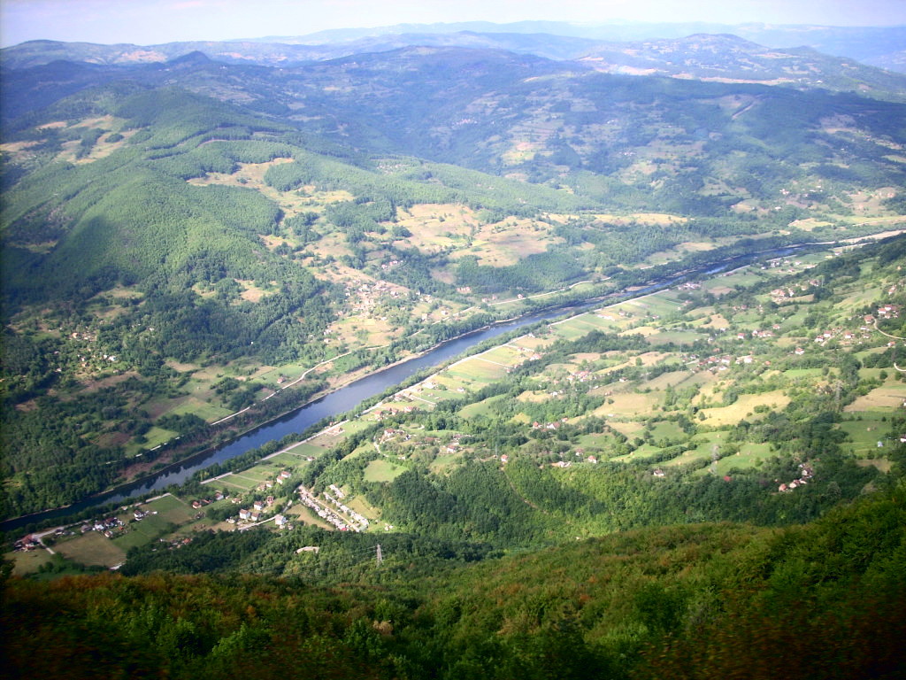 Na putu preko Debelog brda do Bajine Baste u jednom trenu pokaza se dole u dolini debela zelenoplava krivudava zmija. Reka Drina u svoj svojoj lepoti. Spustamo se autobusom s vrha brda krivudavim putem i mestimicno lakat krivinama. Okolo su zelena brda sa razbacanim kucama i plastovima sena.