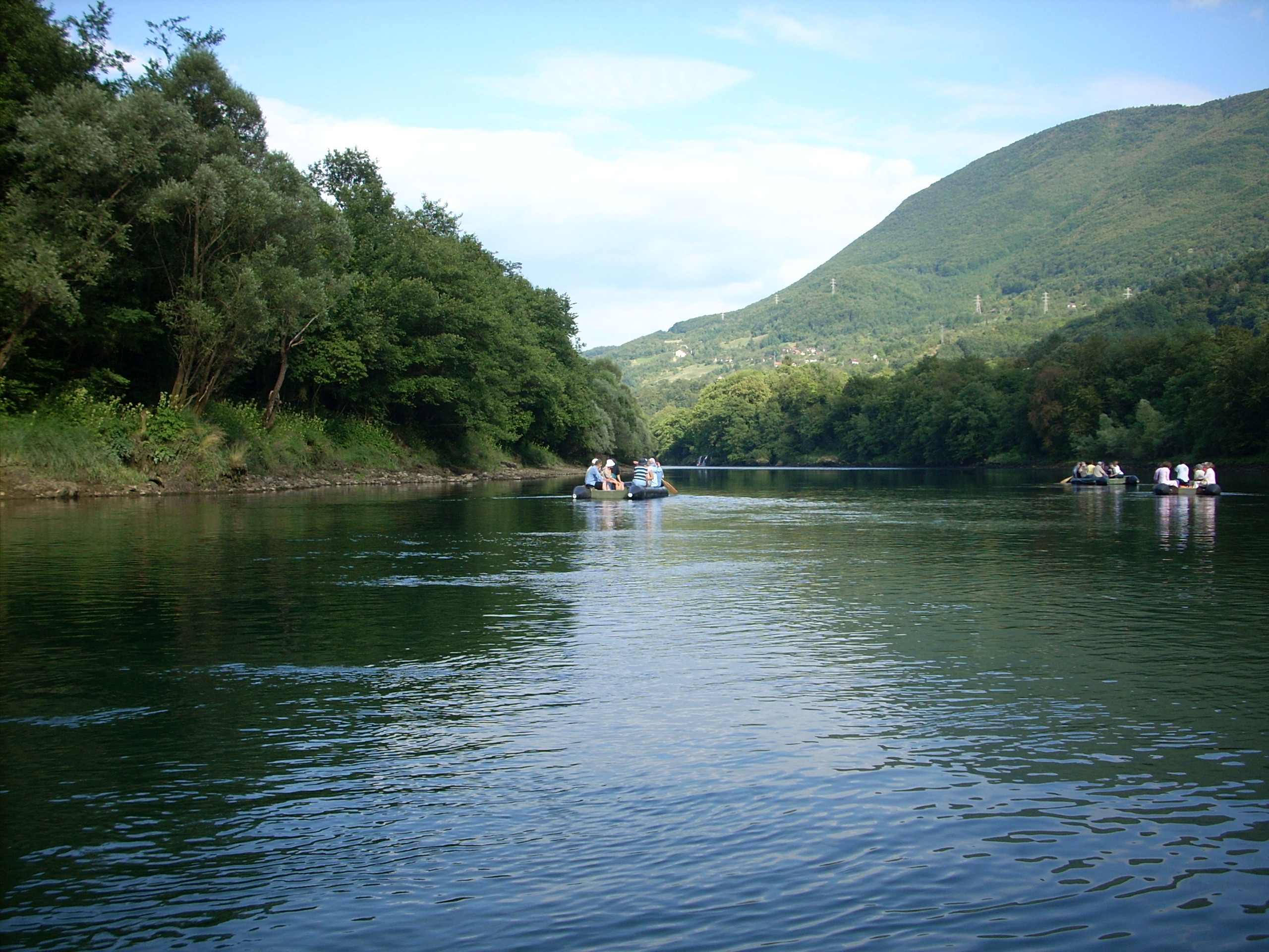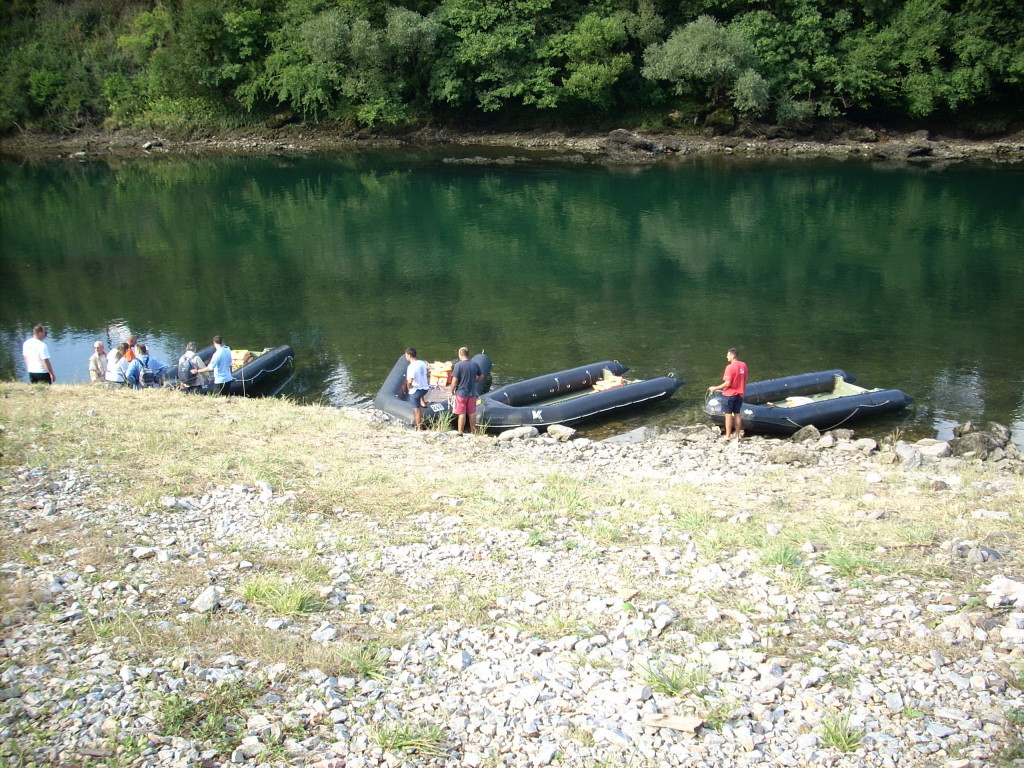 Splavarili smo Drinom u cetiri camca u trajanju od dva i po sata.Stvarno lepo iskustvo.Drina je toliko bistra da je to nestvarno. Veslao je profesionalni kajakas.Imali smo jedno sudaranje camaca koje nije bilo bas prijatno.Naime, camac koji je bio tridesetak metara ispred nas je u jednom trenutku,nosen strujama, krenuo poput metka unazad na nas camac. Nismo se,hvala bogu, prevrnuli. Druga pustolovina je bila kada su naisle isto struje i neki brzaci pa su Velju i mene bukvalo kao kofom zapljusnule velike kolicine vode. Bili smo mokri dobrih sat i po, a sunce zalazi i postaje hladno.Prezivesmo medjutim nekako.