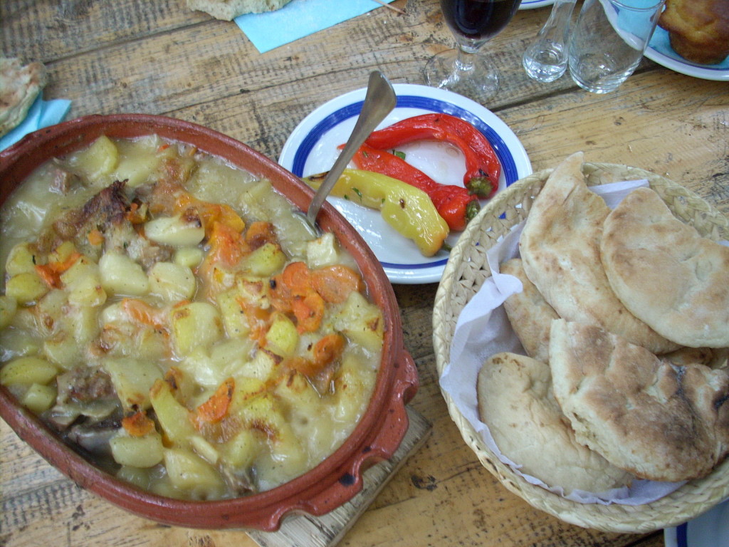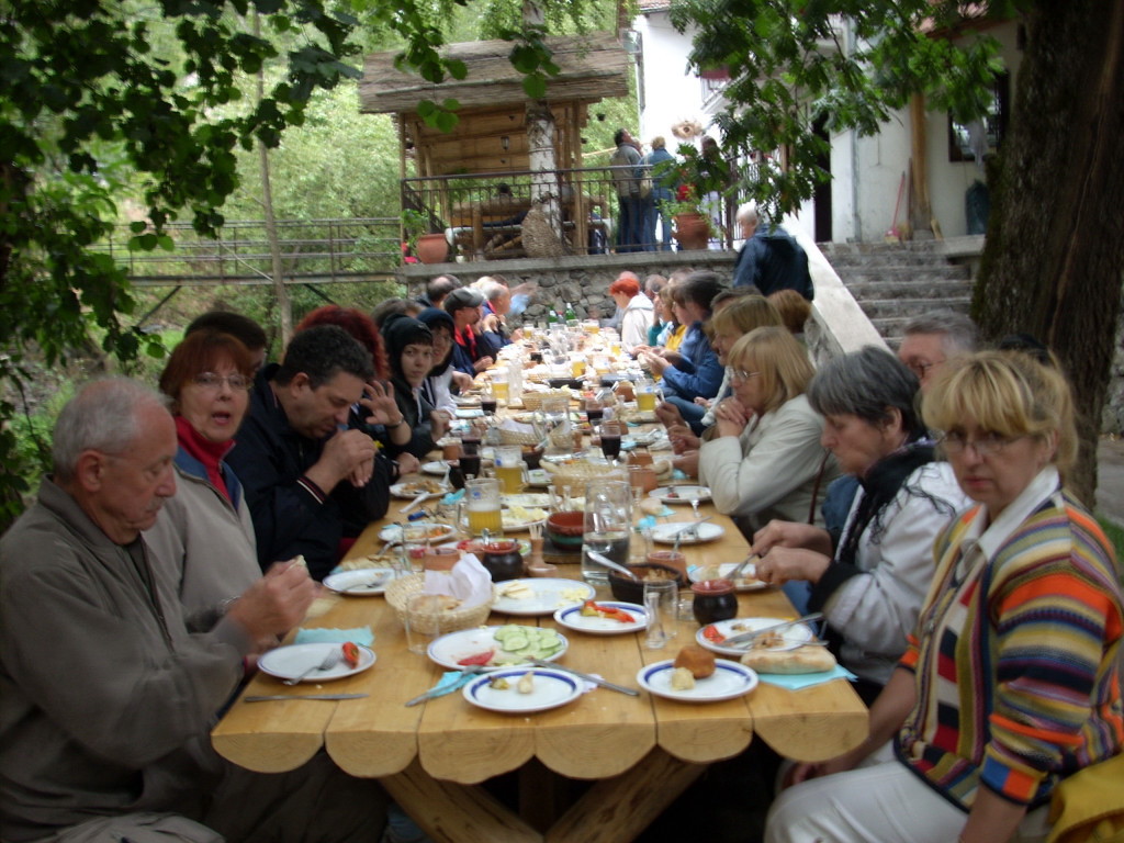 Nasu veliku avanturu zavrsili smo u etno restoranu u Prolom banji. Tacnije u basti restorana pored potoka bio je to gala gastronomski dozivljaj nase prelepe nacionalne kuhinje.Sto od petnaest metara, a uzurbani konobari samo donose.Prvo rakija od divljih krusaka u cokanjima, pa vruca projara, prsuta, sir, kajmak, potom vruce lepinje i kiselo mleko u zemljanim posudama, pa jagnjetina i teletina ispod saca u zemljanim posudama, svadbarski kupus, prebranac, domace lepinje, ljute pecene papricice, i ne znam sta sve jos !