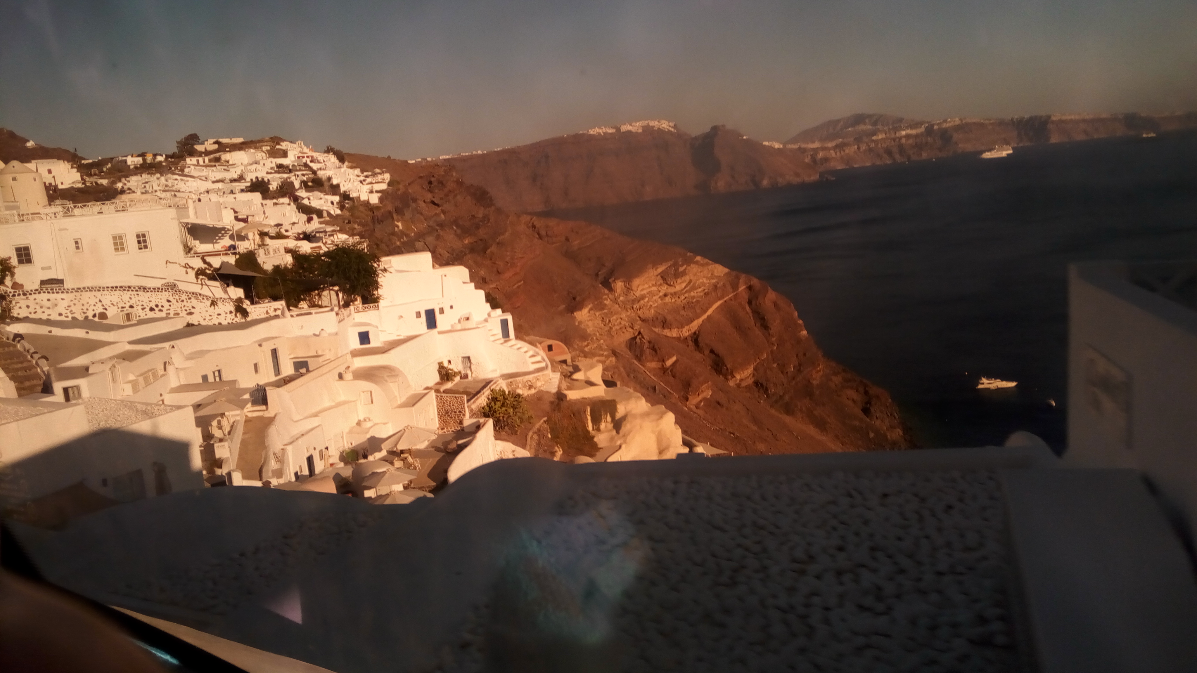 Nakon uzbudljive voznje po obodu grckih puteva, stigosmo na konacno odrediste. Zurila sam da stignem na najlepsi zalazak Sunca, koji je ovde postao ritual lavine turista.