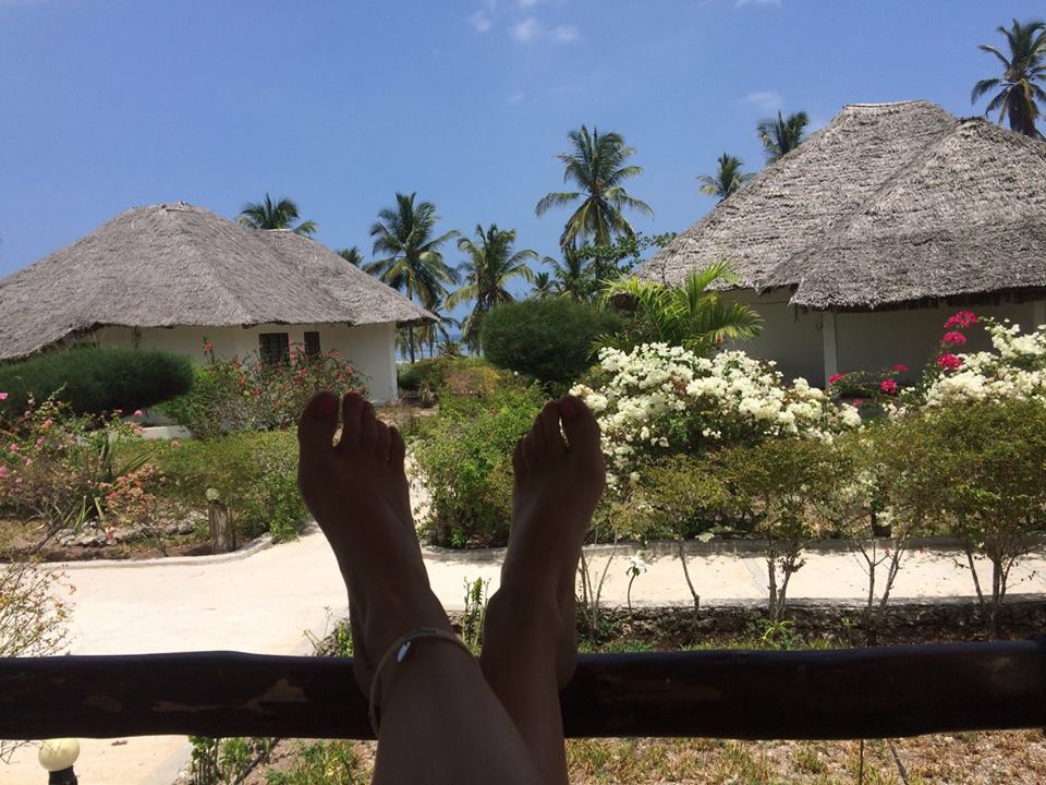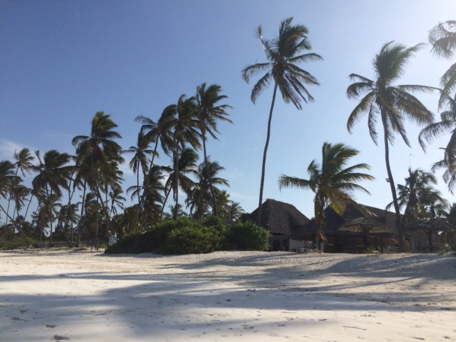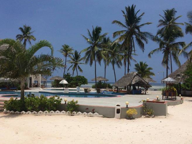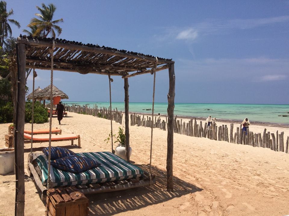 Nakon toga kratki put do smestaja, a tamo ostanes bez reci. Ja sam par puta izustila da moram da se kao u onom crtacu bocnem viljuskom da vidim da li sanjam. Smestaj kucice na samoj plazi, ususkane palmama, s drvenom terasom koja gleda na nepreglednu, bolesno lepu boju okeana, drvenu ogradicu nacickanu decom crncicima koja traze “pipi” (marka slatkisa) i more peska kremaste boje.Pritom, to je jedna jako opustena plaza, puna kite surfera i decurlije koja igraju fudbal ili voze bicikl tik pored mora. Hrana u restoranu koji je u sklopu smestaja bila je izvrsna! Riba na swahili nacin nezaboravno lepog ukusa. Swahili kuhinja koristi mnogo aromaticnih i jarkih zacina, tako da se desava da isparavate koji dan (da ne kazem smrduckate) ako pojedete dosta toga sto ukljucuje crveni kari, cimet, djumbir, safran, biber, karanfilic, koriander..