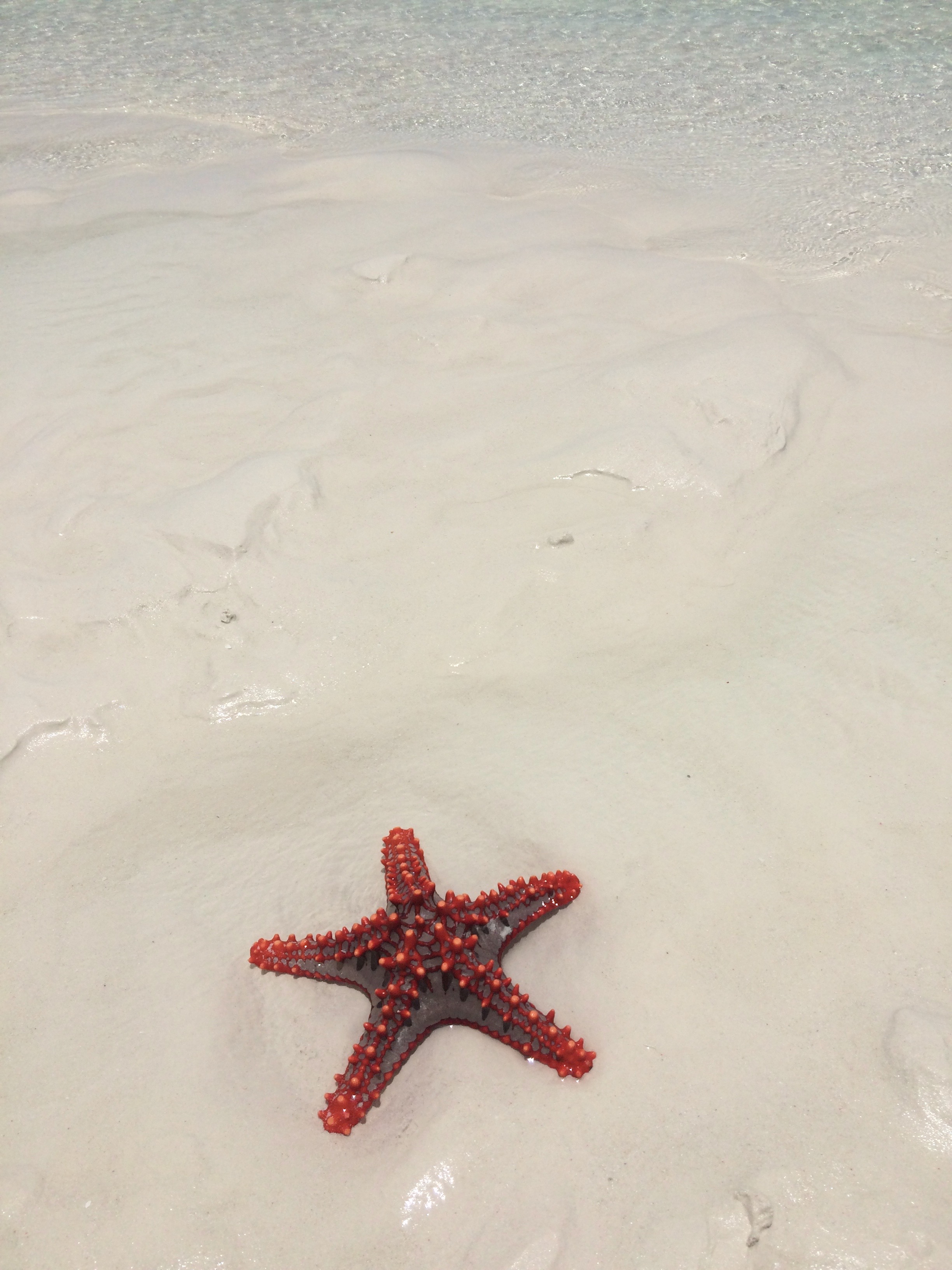 Beli puderasti pesak, smaragdna tirkizna voda, prelepi drveni camci, jarko crvene morske zvezde u plicaku. Da ne poverujes! Tog dana sam se pitala cime sam zasluzila takvu lepotu. Ovo pitanje ce se povremeno javljati u mojoj glavi sve do samog kraja putovanja. A i nakon.