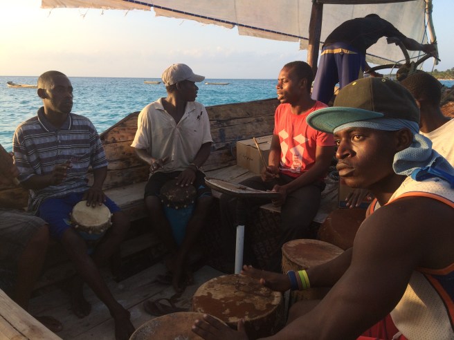 Dan se zavrsio voznjom brodicem uz prelepe obalne predele, ritmove i ples konge koje su izvodili domacin brodica Ali i bend mladih, muzikalnih bubnjara. Pesme su se nizale, a dobili smo i repeat cuvene dirljive Malaike i Hakuna Matate! Ocaravajuce skroz, kakav dan! Zavrsen onako, kako bi se na engleskom reklo, with a bang!