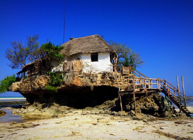 Iskoristili smo to za rucak u The Rock-u, jednom od simbola Zanzibara – restoranu na steni, okruzenom vodom okeana, ciji je vlasnik neki Italijan. Nismo ni tu imali srece sa vodom, posto je Rock bio zahvacen osekom i docekao nas na suvom. Ali to nas nije sprecilo da uzivamo na njegovim prelepim terasama, uz preukusna, raznovrsna jela. Cene su malo vise u odnosu na druga mesta, porcije malo manje, ali sve u skladu sa turistickom popularnoscu mesta. Zanzibarska valuta je tanzanijski shiling (za 100 evra dobije se 230,000 silinga), ali svuda rado prihvataju i dolare, stoga je prosecna cena rucka na Rock-u nekih 30-50 dolara, u zavisnosti od toga sta narucite. Potrebno je ranije rezervisati, naravno.