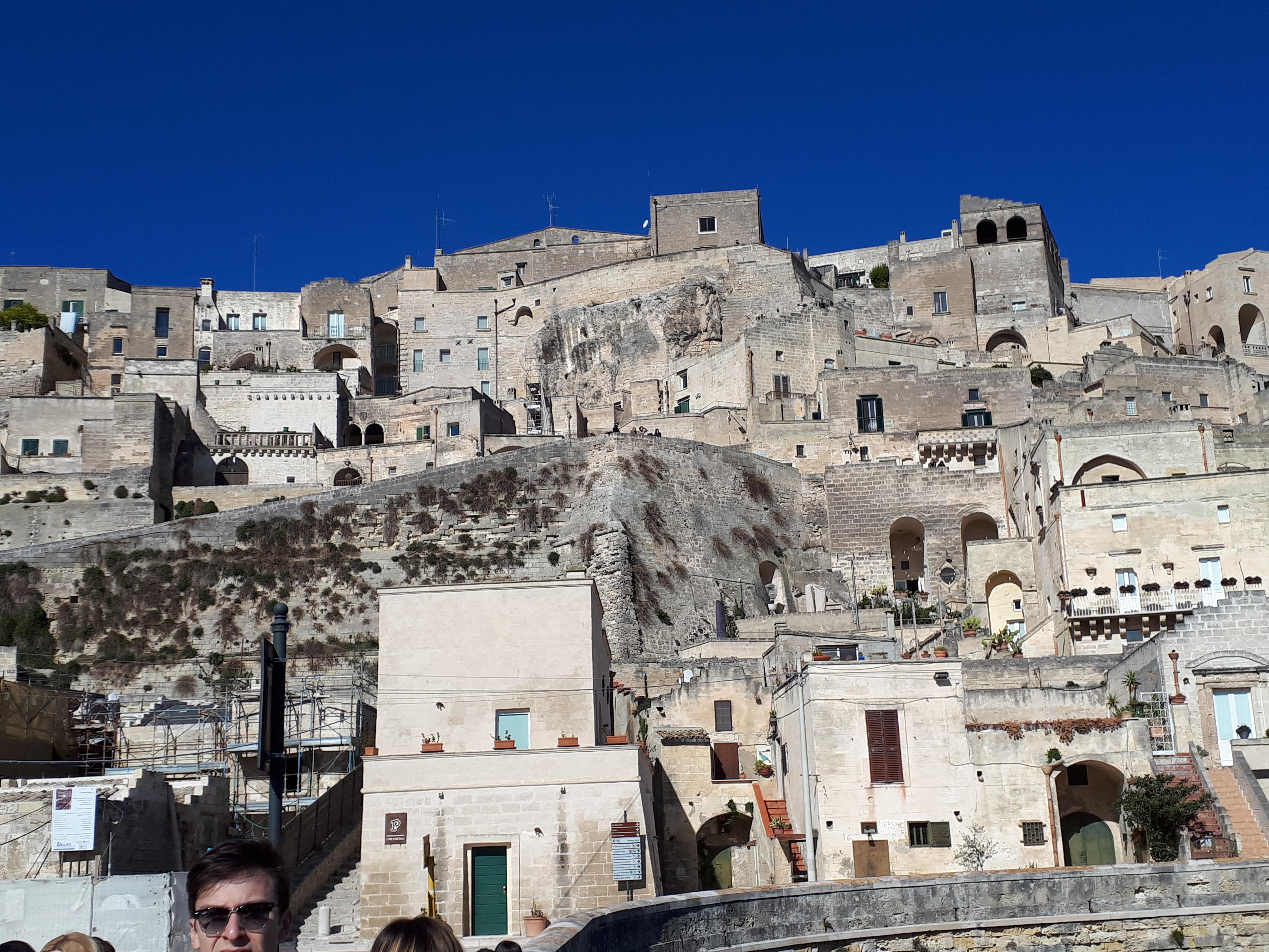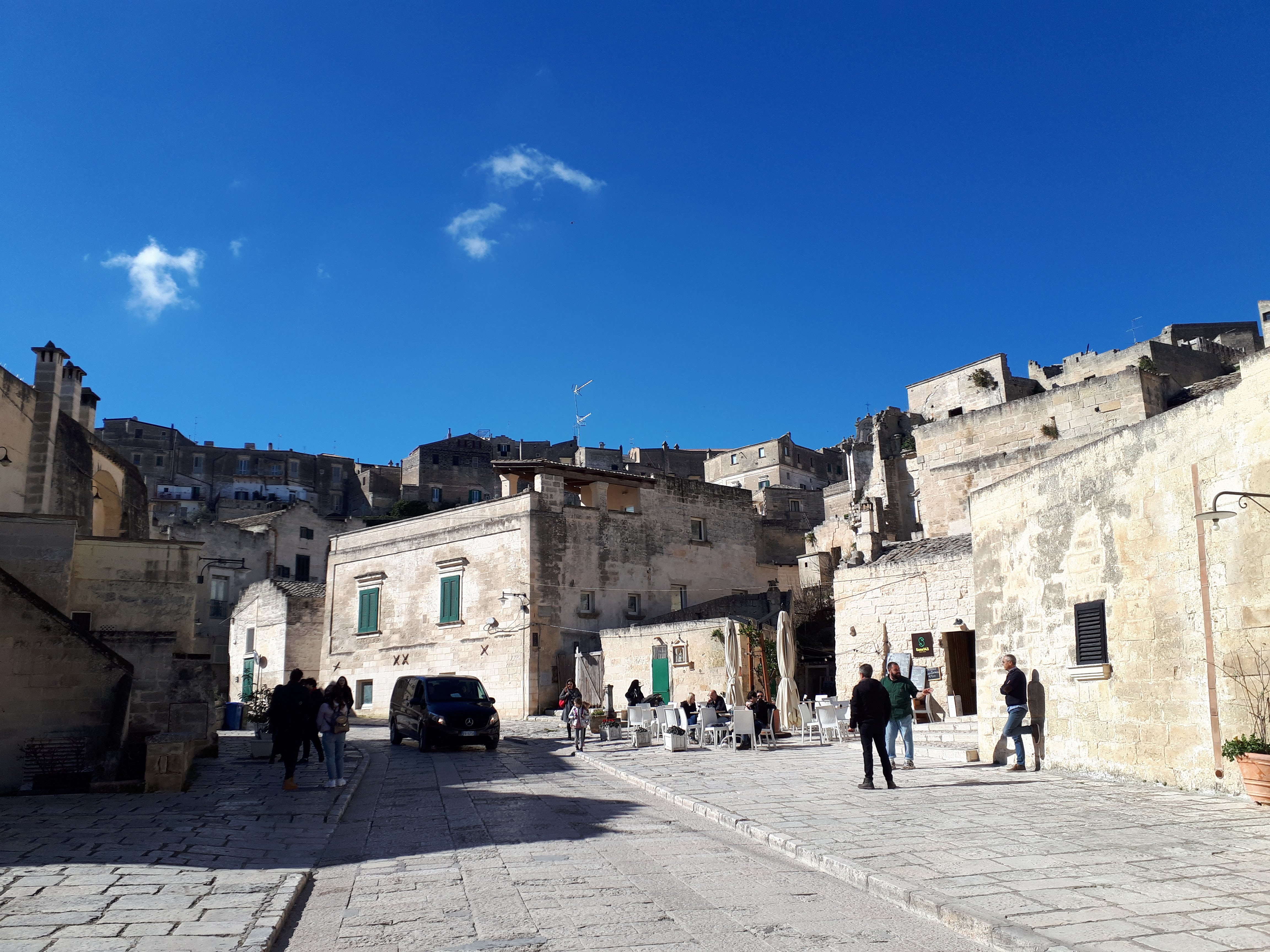 Kuriozitet i posebnost ovog magijskog grada leži u činjenici da ovde ljudi žive u kućama svojih predaka u kontinuitetu 9.000 godina.Matera krije preko stotine pećina u svojoj utrobi a nekada je pećina bila i dnevna soba i kuhinja, što je nama koji smo odrasli u stanovima, kućama, dvorištima teško da shvatimo. Ovaj autentični ambijent je poslužio kao vrsna biblijska scenografija za snimanje filma Stradanje Isusovo, u režiji Mel Gibsona.