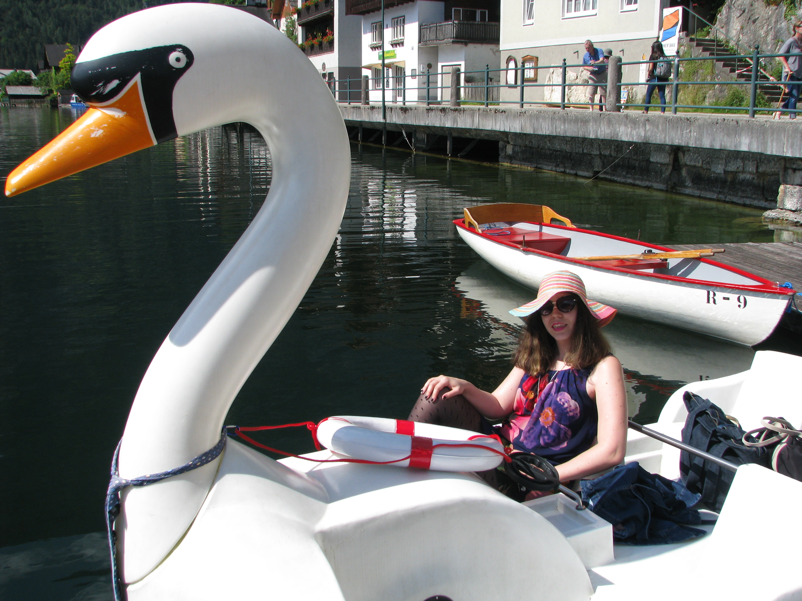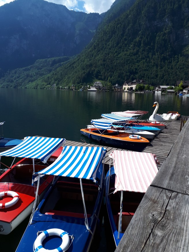 - Prvo, iznajmljivanje pedoline, čamca (8-10 Evra pola sata).Halštat okružuje prelepo istoimeno jezero koje krase brojne pedoline u obliku labuda, čamci, barke. Mi smo se kao neiskusne kapetanke opredelile za najlakšu opciju pedoline i iznajmile je na pola sata. Tako nam je ta vožnja bila zabavna, iako prekratka, a dobile smo i toki voki u slučaju da se nešto nepredviđeno desi. Svakako preporučujem da iznajmite neko od ponuđenih plovila barem na pola sata a možda bolje i sat i da uživate u nestvarnoj lepoti i miru ove prirodne riznice.