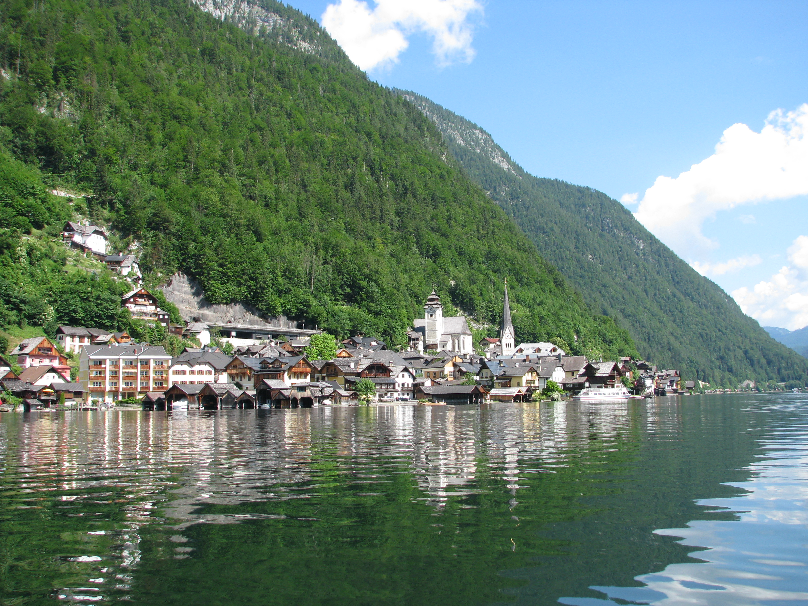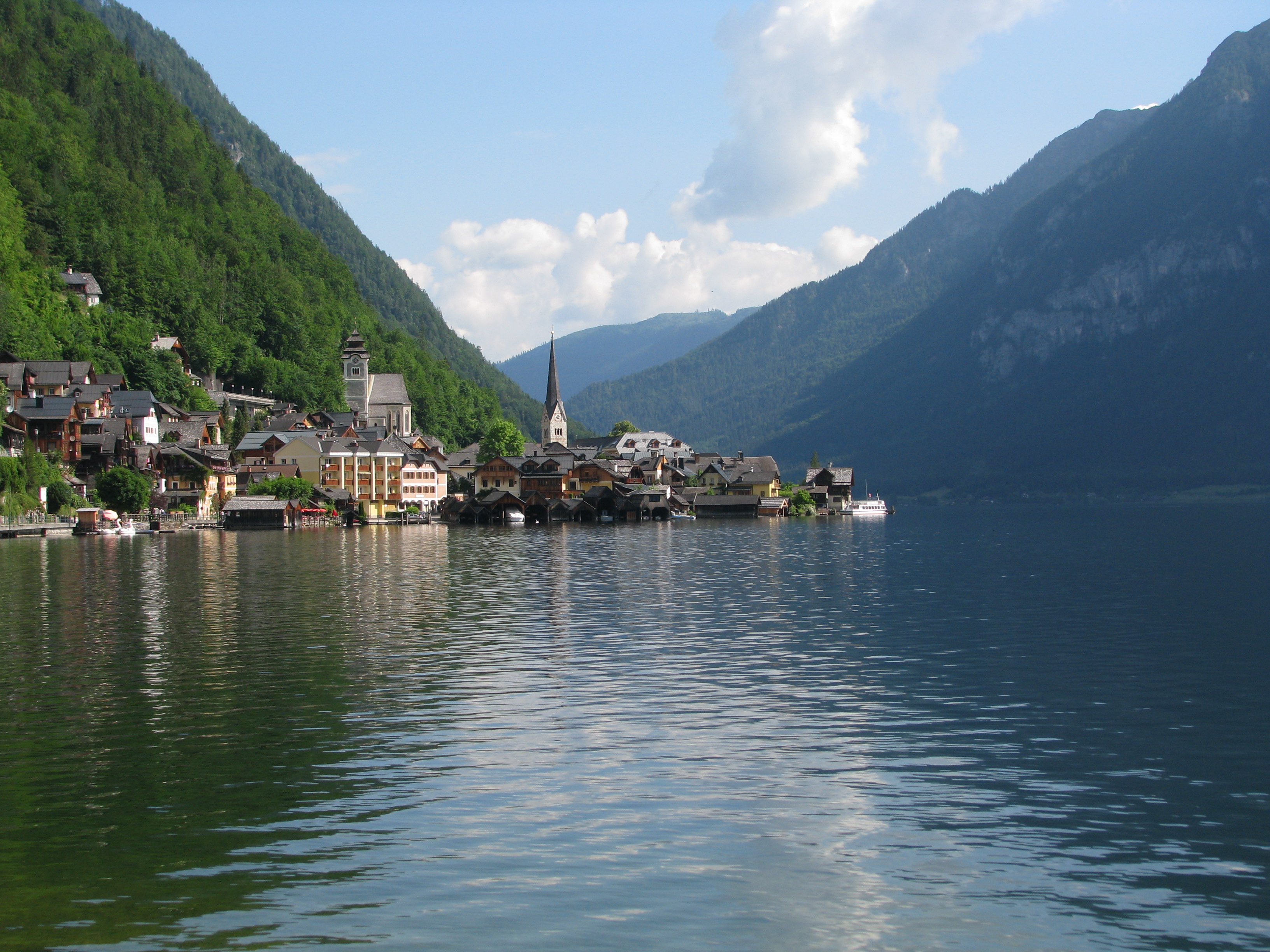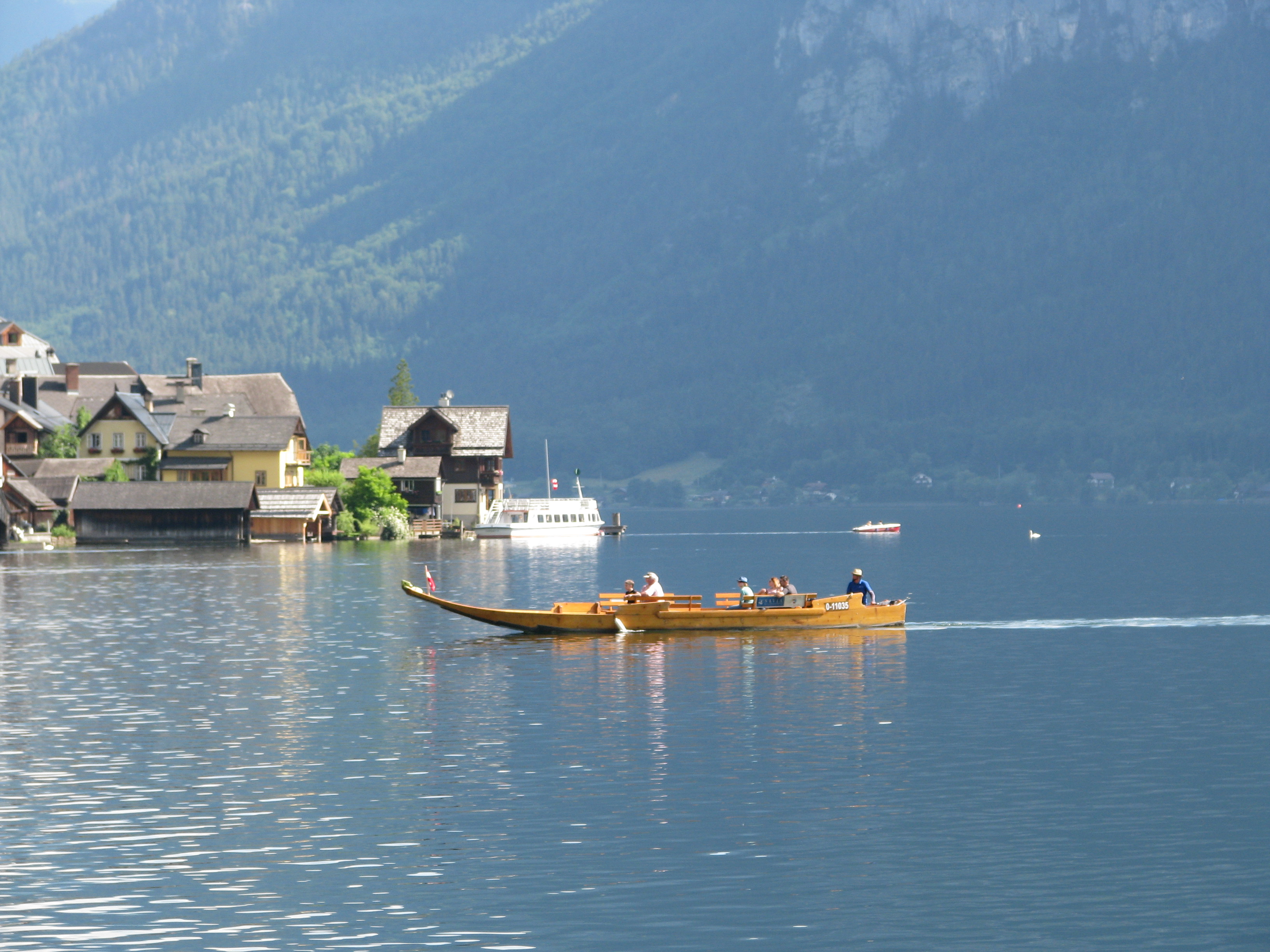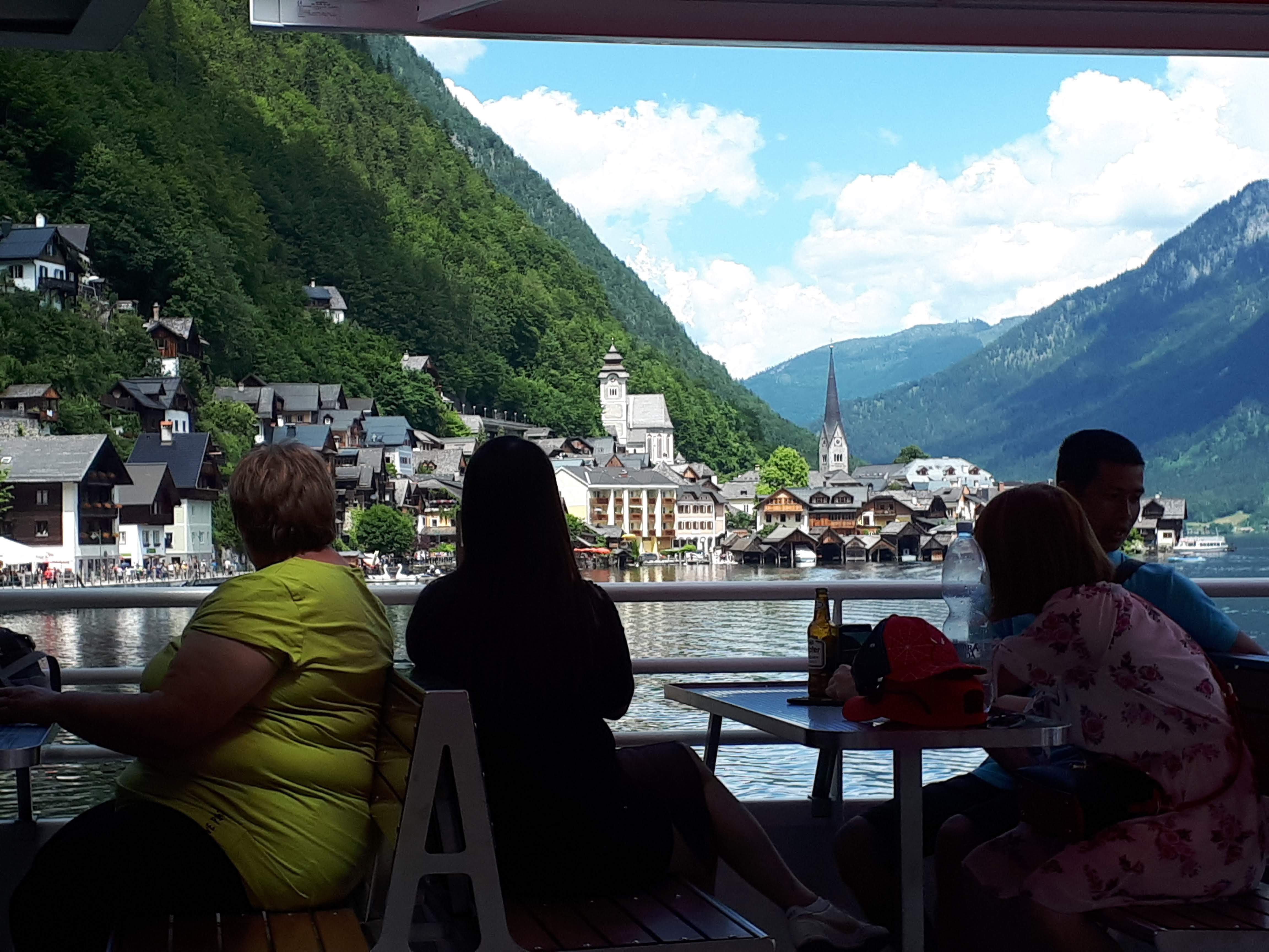 - Potom,vožnja brodom i krstarenje jezerom Halstatter See (10 Evra po osobi) je isto hedonističko iskustvo koje ne treba propustiti. Plovidba traje oko sat i po, dva i stvarno vam se oči oporave od svih tih prirodnih kolorita i boja. Samo se prepustite vožnji i uživajte. Usput postoje stanice, gde ulaze i drugi putnici. Na brodu se može kupiti piće, a toalet ne postoji što je bilo prilicno čudno jer je brod u jako dobrom stanju i nov, ali avaj. Dok plovite, možete čuti priču o Halštatu, ali će se mnoštvo malih, glasnih Kineza pobrinuti da ne čujete ama baš ništa. Na nekoliko mesta u gradu možete kupiti kartu za krstarenje i ukrcati se prema rasporedu koji je jasno istaknut na oglasnoj tabli.