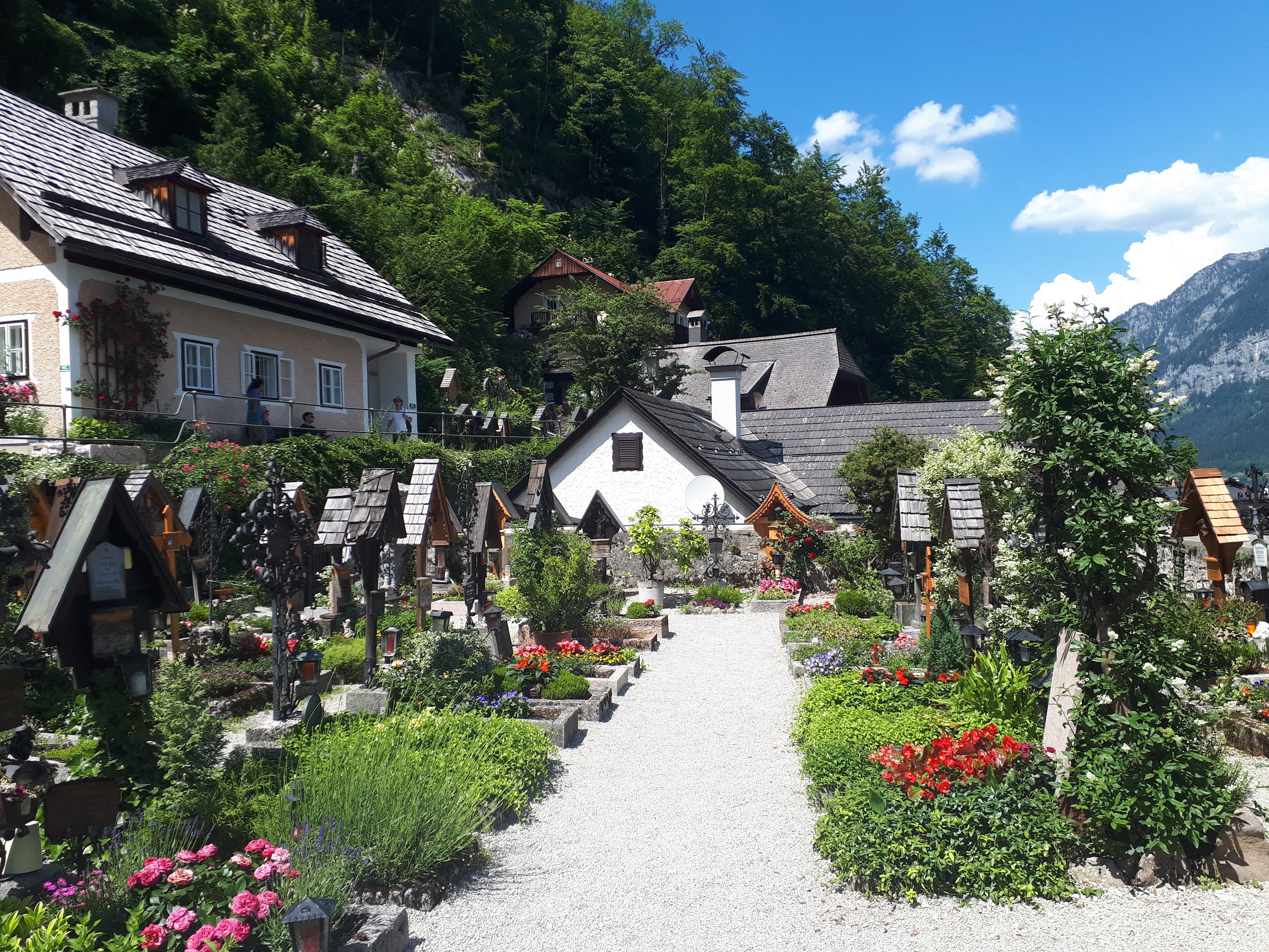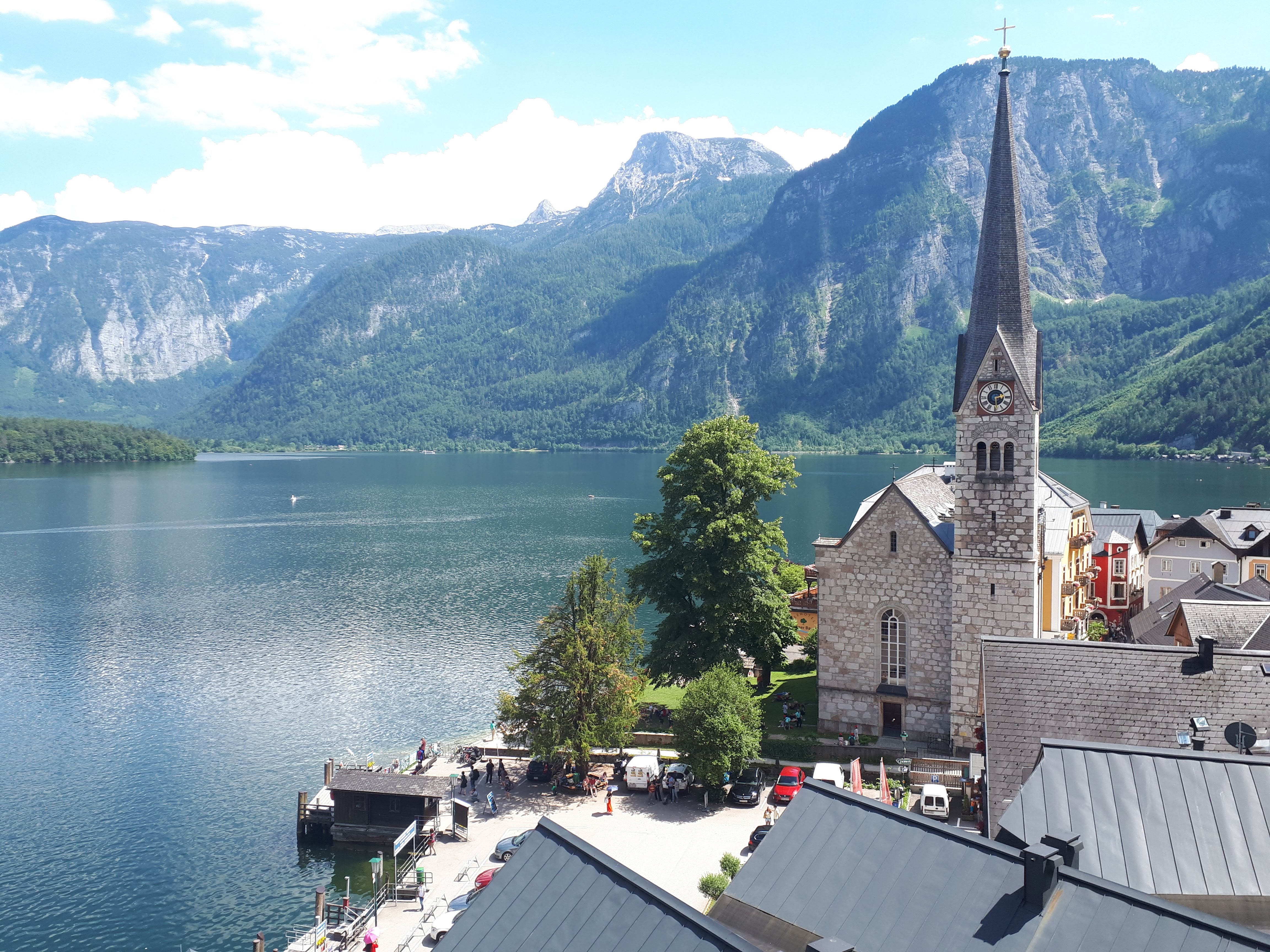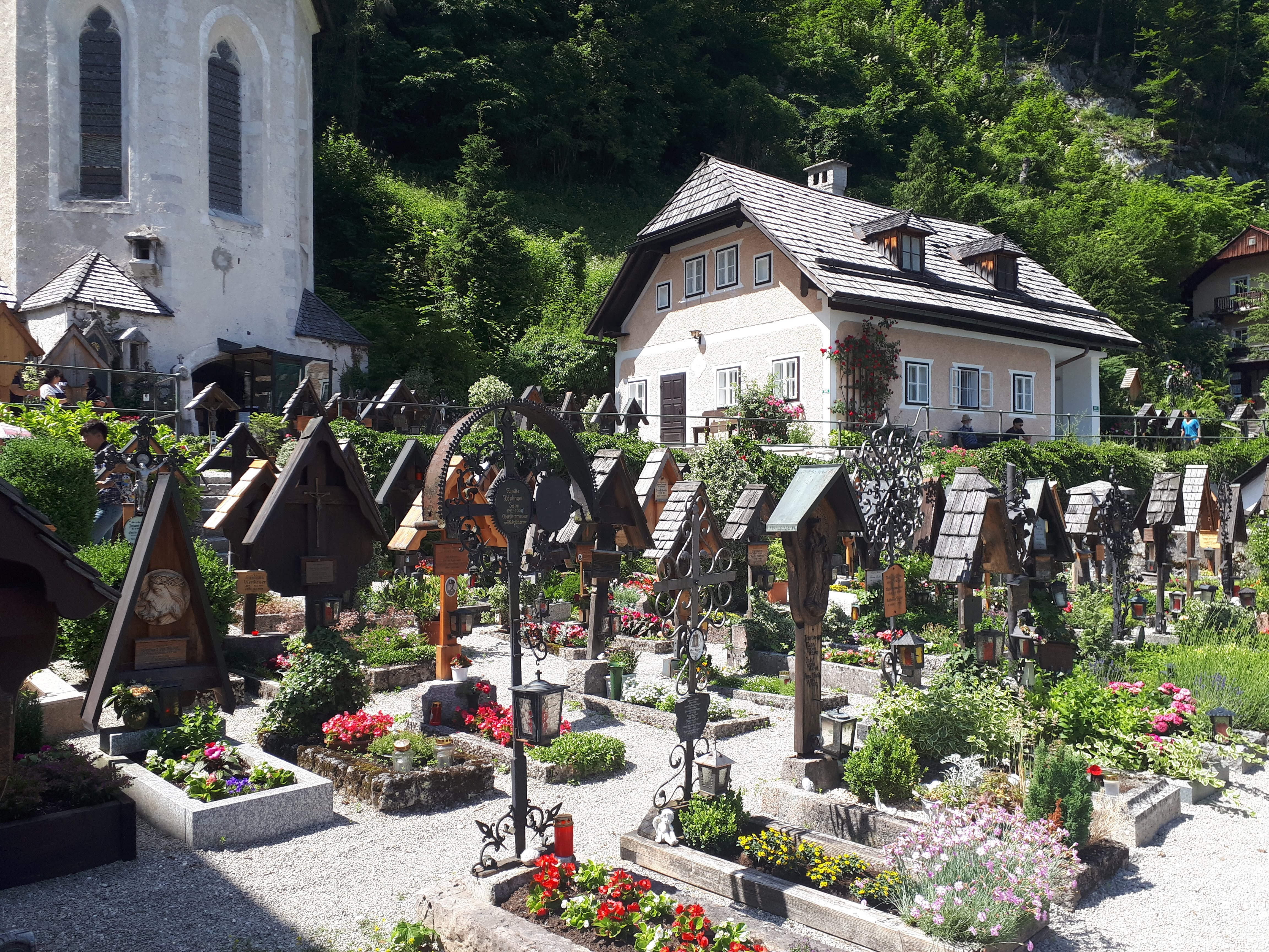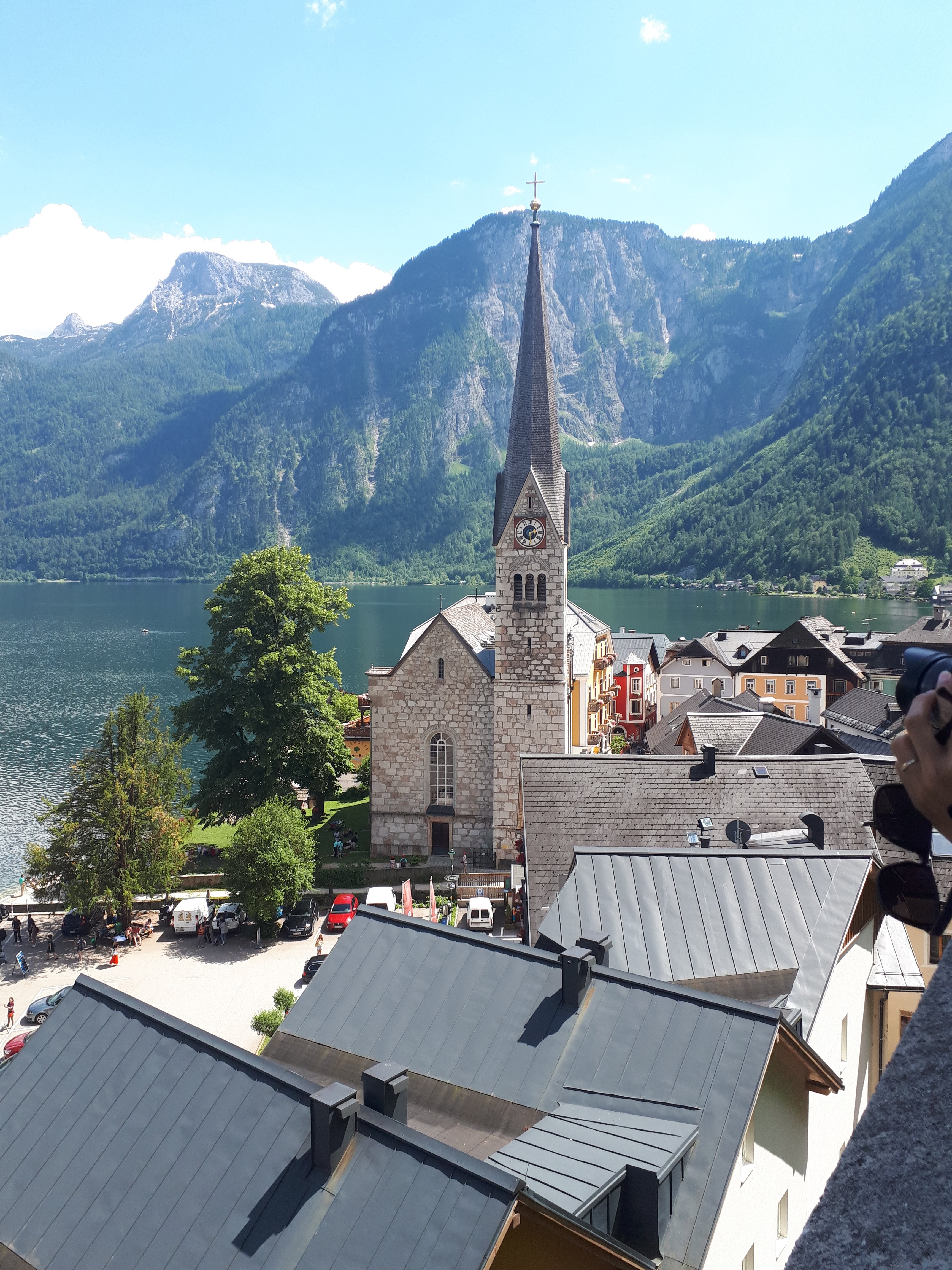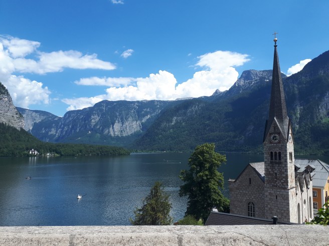 - Kada već šetate uskim uličicama, ako nastavite samo pravo, put će vas odvesti do Halštatske evangelističke lepe crkve i starog groblja, gde ćete primetiti da su kovčezi vrlo mali, obzirom da groblje datira iz nekih proslih vremena kada su ljudi bili niskog rasta. Sa ove tačke se lepo vidi jezero, a i imate utisak da vam je grad na dlanu, pa iskoristite priliku da napravite nekoliko nestvarnih fotografija. Mi smo na putu ka crkvi upitali da li ima mnogo stepenika, ali stvarno ništa strašno. Brzo se i lako stigne, uz manji napor, a pogled ostavlja bez daha.Prošetajte obavezno i do tačke odakle se pruža najslikaniji čuveni pogled na Halštat.Pet minuta hoda od Marktplaca severno duž obale jezera (direktno kod Gosaumühlstraße).